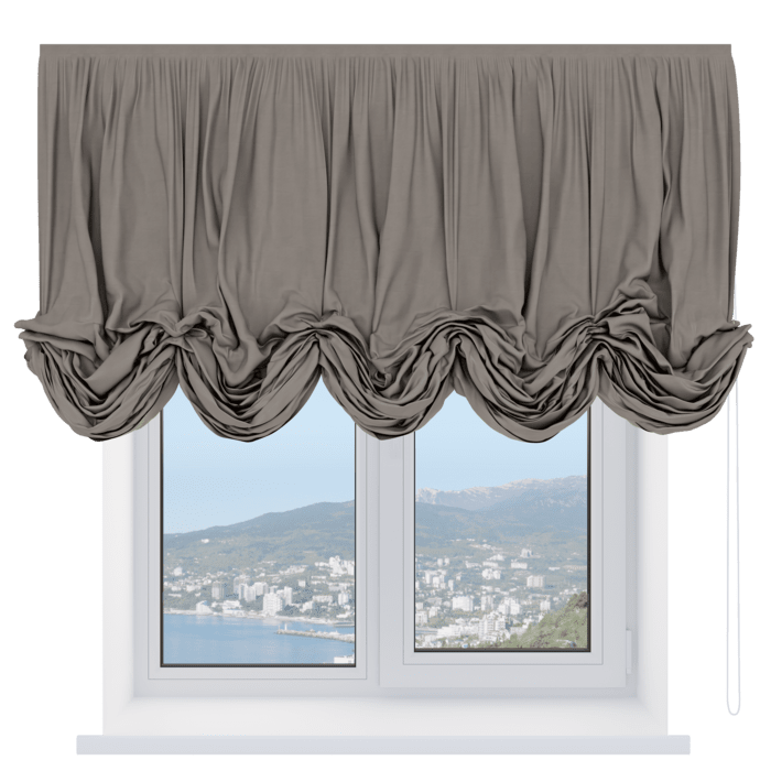 Австрийская штора лён кашемир коричневый, карниз верёвочный