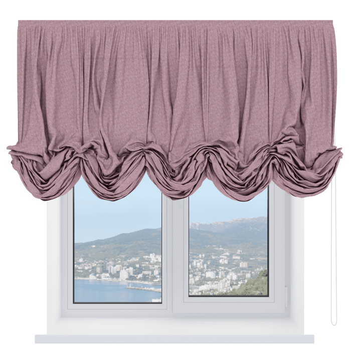 Австрийская штора лён кашемир розовая пудра, карниз верёвочный