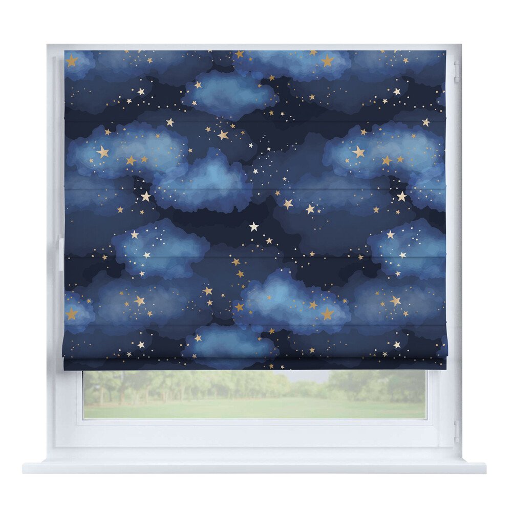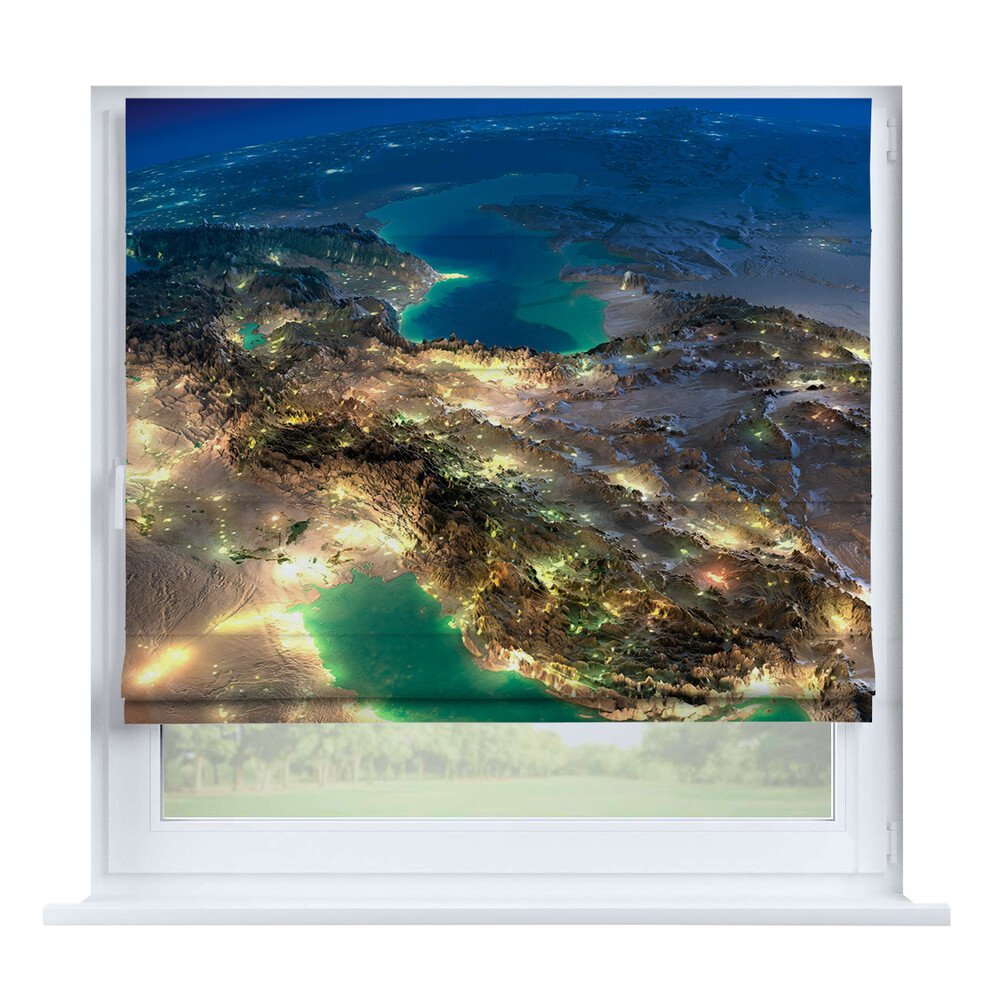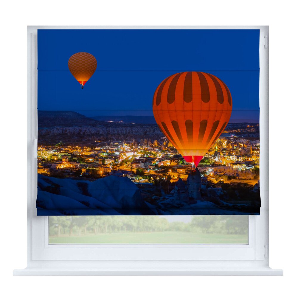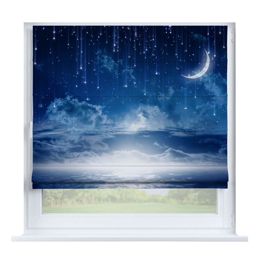 Римская штора на створку «Ночной город», карниз верёвочный