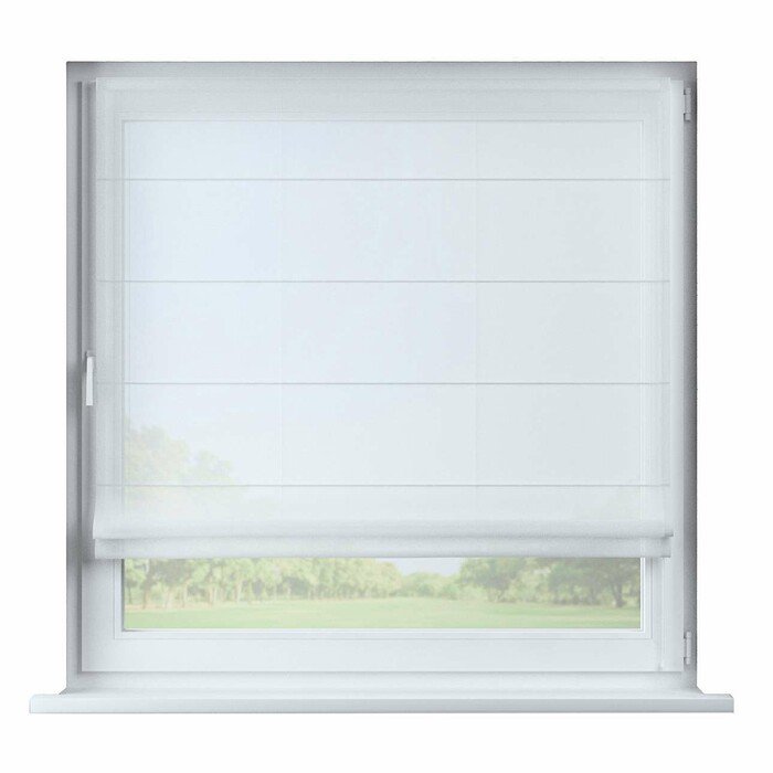 Римская штора на створку лён белоснежный, карниз верёвочный