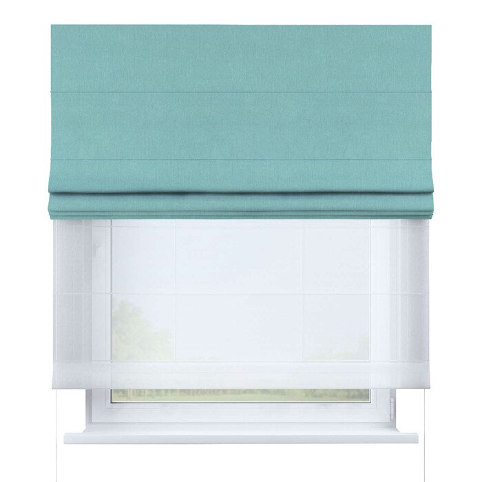 Римская штора день-ночь лён димаут бирюзовый, карниз верёвочный