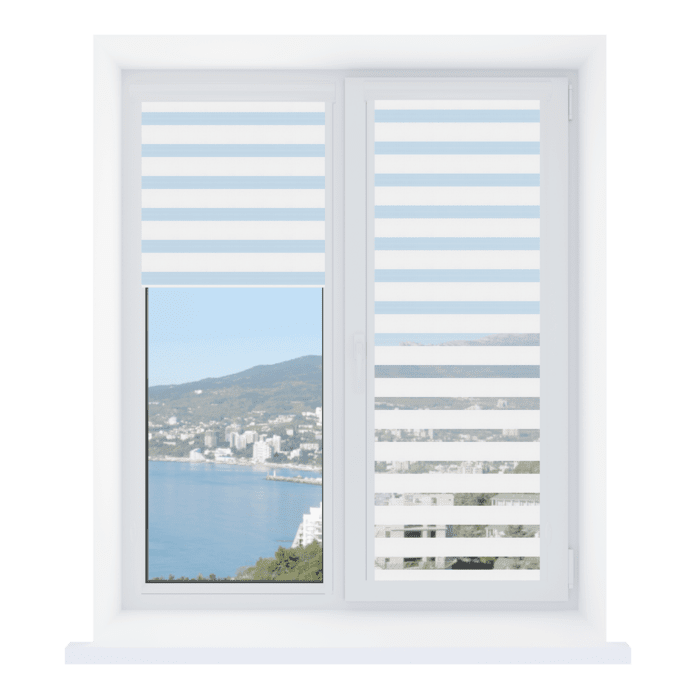 - Регулировка освещения. Возможность гибко управлять световым потоком, чередуя прозрачные и плотные полосы ткани, позволяет добиться как рассеянного света, так и полного затемнения, а также полностью открыть световой проем окна.